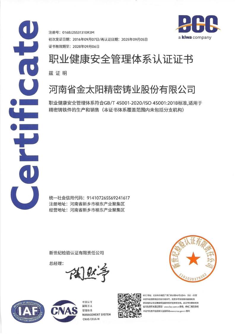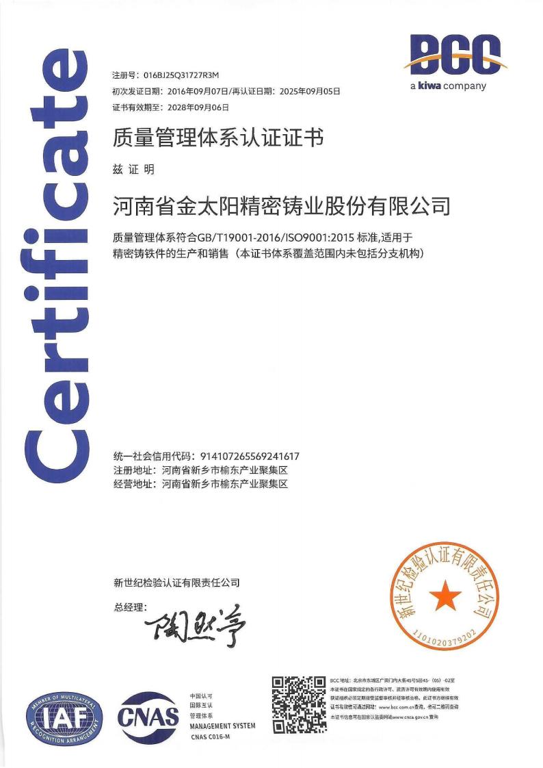 • 河南省金太阳精密铸业股份有限公司