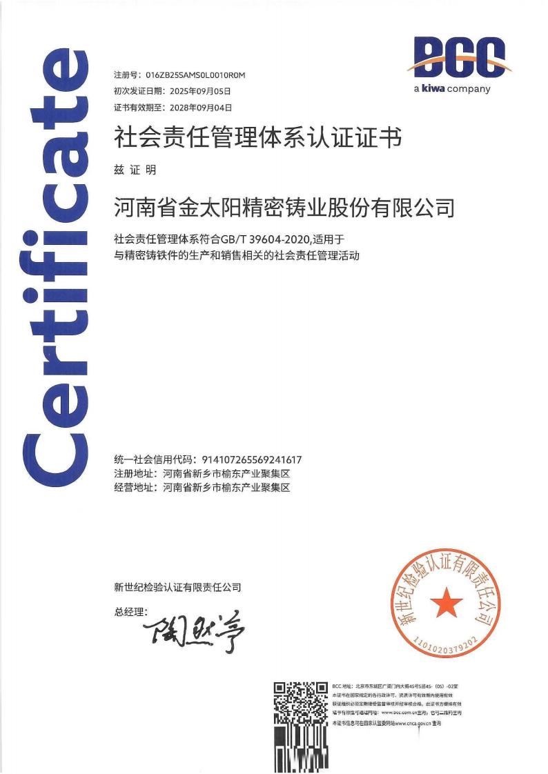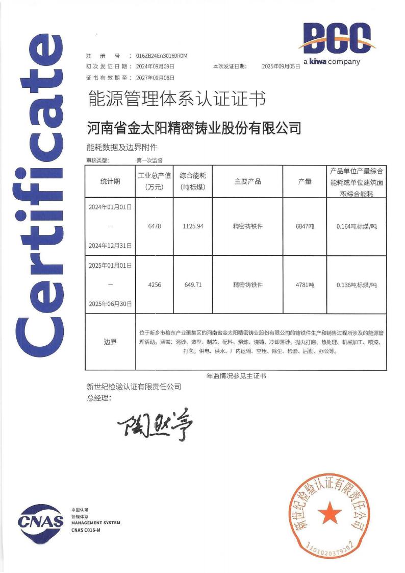 • 河南省金太阳精密铸业股份有限公司